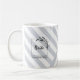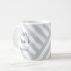 Elegante Monogram Grey Striping Tasse für Bride & Groom Die elegante Monogram Graue Streifen Tasse - eine perfekte Mischung aus Stil und Personalisierung, sorgfältig für die Neuvermählten entworfen. Diese Tasse weist diagonal hellgraue Streifen mit einem ausgeklügelten Monogramm auf und "Groom" oder "Bride" wird elegant in einem modischen Script-Schriftart dargestellt. Egal ob Sie das für eine Hochzeit geben oder einfach nur einen Sake gewollt haben, um den großen Tag zu feiern, diese schicke Tasse ist eine schöne Wahl. Der Name des Bräutigams, der im modernen "Folio Light"-Schriftart geschrieben wurde, verleiht der Tasse ein zeitloses Ambiente mit hellgrauen Streifen und einer Touch von Eleganz. Es gibt auch eine passende Brautversion, die eine wunderbare Paarung für Neuvermählte darstellt. Obwohl jede Tasse einzeln verkauft wird, schafft das Paar zusammen einen schön koordinierten Look für das glückliche Paar. Mit einem Hauch von Spaß infiziert, fügen die Beispielnamen "Justin Time" für den Bräutigam und "Wanda Ring" für die Braut eine spielerische Drehung hinzu - völlig anpassbar, um sie wirklich persönlich zu machen! Ob Hochzeitsgeschenk, Jubiläum oder Jungvermählter, diese Tasse sind darauf ausgerichtet, den Alltag mit Eleganz und Freude zu verbinden. Dank ihres modernen, individuell gestaltbaren Designs sind sie ideal für alle, die eine persönliche Touch zu ihrer Zuhause oder ihrem Büro hinzufügen möchten. Personalisieren Sie Ihre eigene elegante Monogram Striping Tasse noch heute! Ob Sie einer Braut oder einem Bräutigam etwas geben oder beides kaufen, um ein passendes Set zu machen, diese eleganten Tasse sind eine durchdachte und stilvolle Art, Liebe zu feiern. Bestellen Sie jetzt, um einen schönen und praktischen Sake zu schaffen, der für die nächsten Jahre geschätzt wird!