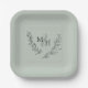 Elegante Monogram Laurel Wreath Sage Wedding Pappteller