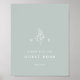 Leicht dustig grüne Hochzeit "Bitte unterzeichnen Sie unser Gästebuch" Poster mit minimalistischem Linien Art-Blatt Monogramm-Design.