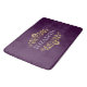 Eine elegante lila und goldene Badematte blüht Monogramm. Fügen Sie Ihren Namen zwischen den goldenen Blüten auf der Vorderseite geblüht. Entworfen für Sie von BlackBerry Boulevard.