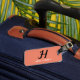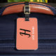 Elegante, minimale, pfirsichfarbene, schwarze, weiße Gepäckmarke. Personalisiert Modernes, Monogramm, Skriptdesign. Sie können das Design mit Namen ändern, initial.