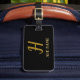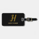 Eleganter, minimaler, schwarzer, goldener Gepäckanhänger. Personalisiert Modernes, Monogramm, Skriptdesign. Sie können das Design mit Namen ändern, initial.