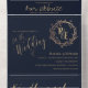 Elegante Monogram Script Navy Gold Wreath Wedding All In One Einladung
