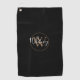 Einfaches, elegantes, schwarzes Gold und weiße Skripte Monogramm Golf Handtuch. Sie können den Namen, das Monogramm personalisieren und den Schriftart und die Farben anpassen, um Ihr eigenes einzigartiges Design zu erstellen. Entwickelt von Thisisnotme©