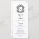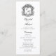 Dieses elegante Hochzeitsprogramm verfügt über ein Wappen an der Spitze mit den Monogramm-Initialen der Braut und Bräutigam in extravagantem formellen Skript-Schriftart.