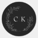 Elegante Hochzeitsaufkleber mit Lorbeerkranz-Monogramm mit Paarinitialen. Fügen Sie die Namen und das Datum des Paares mit den angegebenen Feldern hinzu.
