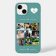 Fügen Sie neun Foto-, Kinder-, Haustiere- oder Freundbilder hinzu und erstellen Sie Ihre eigene, wunderschöne Handykassette mit Ihrem Monogramm-Namen, die Sie in einem weißen Herz über einem aquamarinen, grünen Hintergrund erhalten. ++++++++++ Einfach mit Ihren benutzerdefinierten Bildern und Buchstaben personalisieren