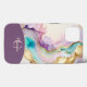 Ein feminines, elegantes, flüssiges Farbdesign in Rosa, lila, Türkis und Gold. Personalisiert mit Monogramm und Name.