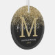 Monogram Glasschmuck mit trendigem schwarzem Hintergrund, elegantem goldfarbenem Glitzer, Wasserfall-Design, Ihr Anfangsname, Familienname, Vornamen und das Jahr.