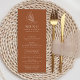 Dieses Hochzeitsmenü wurde für die Abstimmung mit unserer Hochzeitskollektion Eleganter Botanischer Mond und Sterne konzipiert und bietet eine cremefarbene Kunstdarstellung eines mit Sternen verzierten Mondes und eines Set aus Blattwerk vor Terrakotta. Persönlich gestalten Sie das Mondmenü mit Ihren Namen, dem Hochzeitstag und den kuratierten Menüangeboten.