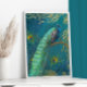 Eines der beliebtesten Gemälde von Audrey Jeanne ist jetzt mit echten Goldfolienakzenten erhältlich! Dieser Pfau ist mysteriös und elegant mit vergoldeten Blättern, Pfauenfedern und einem Mitternachtsblau, aquamarin und aqua Hintergrund. In Ölpastellfarben von international lizenzierter Künstlerin und Designerin, Audrey Jeanne Roberts, urheberrechtlich geschützt.