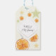 Elegante Muster Orangen und Sterne auf Beige Geschenkanhänger