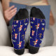 Moderne elegante nautische Ikonen wie goldener Anker, Schiffrad und Leuchtturm auf marineblau.