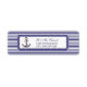 Passen Sie dieses elegante Design des Nautical Wedding Navy Stripes Address Label an. Navy Blau-weiß gestreiftes Muster mit einem Marineschanker an der Seite und einem blau-weißen Seilrücken. Das marineblau-weiß gestreifte Muster befindet sich ebenfalls auf der Rückseite. Eine Vorlage für eine einfache Anpassung Ihrer Hochzeitsdetails wie Namen von Braut und Bräutigam sowie die Rücksendeadresse.Das gleiche Design ist auch in anderen passenden Hochzeitsmaterialien erhältlich, um das Thema der nautischen Hochzeit im Stil zu tragen.