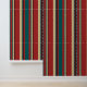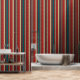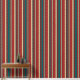 Klassisches Muster aus vertikalen Streifen in warmen, herbstlichen Farbtönen in Rot, aquamarin und Creme, hervorgehoben durch dünne schwarze Linien. Dieses zeitlose Design erinnert an Gefühle von Komfort, Wärme und Nostalgie. Ideal, um eine Touch saisonalen Stils zu Ihrer Zuhause hinzuzufügen.