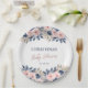 Elegante Navy Blue Blush Pink Floral Baby Dusche Pappteller