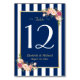 Elegante Navy Blue Floral Wedding Tischnummer