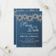 Die elegante blaue Silver Snowflake Save the Date mit marineblau-blauem Hintergrund, silberkristallklarer Schneeflocke und einer modernen Textvorlage. Die Rückseite der Karte hat eine Namensvorlage. Ein perfektes Design, das die Hochzeitsdekoration wie Winter, modern, romantisch & luxuriös Thema passt.Bitte klicken Sie auf den personalize Button, um es mit Ihrem eigenen Text anzupassen.