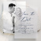 Set den Ton für Ihre Hochzeit mit unserem eleganten Vellum speichern Sie die Dattelkarten. Dieses Design zeichnet sich durch "Save the Date" in anspruchsvoller Marinekalligraphie auf einem schieren Vellum-Hintergrund aus, die zeitlose Schönheit mit einer modernen Touch verbindet. Paare können die Karte mit ihren Namen, ihrem Hochzeitstag, ihrem Standort und ihrer Hochzeitswebsite in fett gedruckter Schifffahrtsschrift personalisieren, um sicherzustellen, dass Ihre Daten stilvoll und leicht zu lesen sind. Diese individuell gestaltbaren Vellumkarten sind perfekt für einen bleibenden Eindruck geeignet und bieten eine raffinierte und zeitgemäße Art, Ihren besonderen Tag für Familie und Freunde zu verkünden.