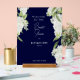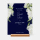 Navy Hintergrund White Hydrangea Brautparty Acryl Begrüßungszeichen. Weiße Schrift. Modernes Design und Schriftart. elegant.