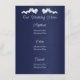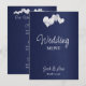 Elegante Navy White Wedding Menu Karte für Ihre Hochzeitsempfangszubehör. Der erste Text enthält: Hochzeitmenü, Braut- und Gräuelnamen und Hochzeitstag. Der umgekehrte Text beinhaltet: Unser Hochzeitsmenü, Appetizer, Entre und Dessert Selection. Um Ihre persönlichen Daten zu personalisieren, fügen Sie einfach Ihre Daten in unsere einfache Vorlage ein und ersetzen den Beispieltext. Schauen Sie sich die passende Hochzeitsempfehlung und das passende Zubehör für den Empfang dieser eleganten White Wedding Collection an.