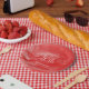 Elegante, noble korallenrote rosa Rose, 20. Pappteller