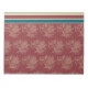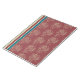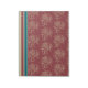 Ein elegantes Notepad oder Jotter, mit einem formalisierten Blumenmuster und Liegestuhlstreifen in beige und dunkelblau auf einem weinroten Hintergrund.