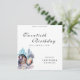 Eine schöne, moderne und elegante Geburtstagseinladung in Schwarz-Weiß mit handbemalten Muscheln und Korallen auf einem Sandstrand. Für jeden Geburtstag individuell einstellbar