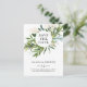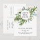 Dieses elegante Olivenhain Save the Date Postkarte ist perfekt für Ihre moderne Hochzeit im Sommer. Er ist mit smaragdgrünen und salgerfarbenen Blätter in Aquarellfarbe, Touchs aus botanischem Gold, Blume aus rot-rosa Oliven und schlichter Vintager Typografie in Schwarz gestaltet. All diese Elemente verbinden sich zu einem wunderschönen böhmischen Ambiente.