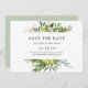 Diese elegante Olivenhochzeit Save the Date ist perfekt für Ihre moderne Hochzeit im Sommer. Er ist mit smaragdgrünen und salgerfarbenen Blätter in Aquarellfarbe, Touchs aus botanischem Gold, Blume aus rot-rosa Oliven und schlichter Vintager Typografie in Schwarz gestaltet. All diese Elemente verbinden sich zu einem wunderschönen böhmischen Ambiente.