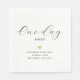 Elegante Servietten "One Day Away" mit individualisierbaren Namen und Dattel mit einem niedlichen goldenen Herz für Probe Dinner. Personalisieren Sie das Objekt, indem Sie den Beispieltext ersetzen.
