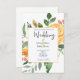 Eine elegante orangefarbene Blüte mit Einlage für Ihre persönlichen Details. Kann auch Schriftart und Farben bearbeiten.