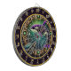 Umgestalten Sie Ihre Angellodge oder Ihre Mancave mit dieser eleganten Dartboard-Dekoration mit Orca und Schildkröten. Die zentrale Figur, ein Orca-Regal, ist schön detailliert mit aufwändigen Designs in lila, gold und blau, was ihr einen auffallenden Buntglaseffekt verleiht. Eine Schildkröte ergänzt das Wassermotiv um ein angenehmes Baden. Die gesamte Komposition wird in einem runden Rahmen mit aufwändigen Goldfiligranen, leuchtenden Edelsteinen und himmlischen Elementen verziert. Dieses einzigartige Stück verbindet rustikalen Charme mit einem fantasievollen Flair und macht es zu einer perfekten Ergänzung zu jedem Erholungsraum. Ideal für Fans von Meereslebewesen, Outdoor-Enthusiasten oder für alle, die eine besondere Wandkunst suchen, passt dieses Dekor nahtlos in eine menschliche Höhle, Lodge oder Spielhalle. Halten Sie dieses Dartboard fest oder zeigen Sie es als Brennpunkt an, um die Atmosphäre Ihres Raumes sofort zu verbessern. Die harmonische Mischung lebendiger Farben und detaillierter Handwerkskunst sorgt dafür, dass jeder Besucher das Auge erblickt. Erschaffen Sie mit diesem einzigartigen Orca- und Schildkrötendesign einen Raum, der Ihre Liebe für Kreativität und Natur widerspiegelt.