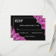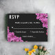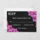 Diese elegante, blumengeschmückte RSVP-Karte eignet sich perfekt für eine moderne Hochzeit im Sommer. Das schlichte Design besticht durch hübsche lila orchid-Blume mit eleganter weißer Typografie auf fett schwarzem Hintergrund.