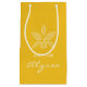 Eine vereinfachende Geschenktasche mit einer eleganten orchiden Blume auf einem schlichten, gelben Hintergrund. Personalisieren Sie dieses minimale weibliche Design, indem Sie den Namen des Party Mädchen.