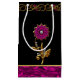 Schöne Geschenktasche getan im Schwarzen, wenn ein Orchidee farbiger Folienblick im Gold umrandet ist, entlang der Unterseite. Grafiken eines verzierten Goldes und rosa der Edelsteinrollegrenzdekoration, Läufe über der Spitze der Tasche, mit einem GoldBlumenjuwel, in der Mitte, mit Edelstein mögen Akzente. Fertigen Sie besonders an, um Text dieser bezaubernden Geschenktasche hinzuzufügen.