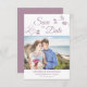 Elegante und romantische Save the Date Fotokarte mit einer schönen und zarten, lila Orchideenblütenlinie, die im oberen Teil auf weißem Hintergrund zeichne. Einfach personalisierbar, indem Sie eine Ihrer Lieblings-Verlobung-Horizontalbilder hinzufügen und die Vorlagenfelder im unteren Band mit Ihren Namen, Datum und Position in einem modernen und einfachen lila All-Caps-Schriftart bearbeiten. Für weitere Personalisierungen oder Sonderanfertigungen, kontaktieren Sie mich bitte unter acherryonthecake@hotmail.com (bitte 1-2 Arbeitstage). Diese Save the Date Karte ist Teil der Kollektion "Delikate Orchideen - Dusty Lila Hochzeitssuite" mit vielen aufeinander abgestimmten Gegenständen, um eine einzigartige Hochzeitssuite zu schaffen.