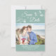 Elegante und romantische Save the Date Fotokarte mit einer hübschen, zarten, blühenden Orchidee, die im oberen Teil gezeichnet wird, auf einem eleganten, minzgrünen Hintergrund. Einfach personalisierbar, indem Sie eine Ihrer Lieblings-Verlobung-Horizontalbilder hinzufügen und die Vorlagenfelder im grünen Unterband mit Namen, Datum und Position in einem modernen, schlichten Schriftart mit weißer All-Caps bearbeiten. Für weitere Personalisierungen oder Sonderanfertigungen, kontaktieren Sie mich bitte unter acherryonthecake@hotmail.com (bitte 1-2 Arbeitstage). Diese Save the Date Karte ist Teil der Kollektion "Delikate Orchideen - Mint Green Hochzeitssuite" mit vielen aufeinander abgestimmten Gegenständen, um eine einzigartige Hochzeitssuite zu schaffen.