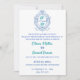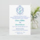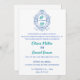 Diese Hochzeitseinladung zeigt ein elegantes blaues Linien-Kunstdesign mit einem verziert ovalen Rahmen, der mit Blumenmotiven, Bändern und Bögen geschmückt ist. Die aufwändigen Details schaffen ein Vintages und raffiniertes Ambiente auf weißem Hintergrund, perfekt für ein traditionelles oder formelles Hochzeitsthema.