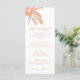 Genießen Sie Ihren Empfang mit diesem eleganten Palm Tree Tropical Wedding Menu, mit einer weichen "Peach Fuzz" orangefarbenen Palme und einer ausgefeilten Typografie, die Ihnen ein boho-Ambiente verleiht. Dieses Menü, das den Charme der Insel mit der modernen böhmischen Eleganz verbindet, präsentiert Ihre Hochzeitsküche wunderbar und verleiht Ihrem Tisch eine raffinierte Touch. Ideal für Strandhochzeiten, tropische Empfang und Feiern an der Küste, auf Premium-Papier gedruckt mit individuell anpassbaren Details, um Ihren besonderen Tag zu erfüllen. Ein stilvoller Weg, um Ihr Abendessen am Meer, ein Inselfest oder ein Sonnenuntergang zu genießen.
