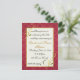 Elegante Party Einladung zum Hochzeitstag, in einem mit Pergament gefärbten Textbereich, mit einem hellroten gepolsterten Rahmen und goldenen Fleur-Akzenten in den Ecken. Passen Sie den Text an, indem Sie ihn an das ändern, was Sie brauchen. Sehr elegant aussehend.