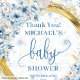 Elegante pastellblaue Blumen Gold Babydusche Gefal Geschenkanhänger