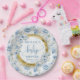 Elegante pastellblaue Blumen Goldjunge Dusche Pappteller