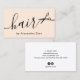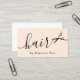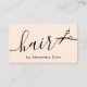 Dieses moderne, hairstylistische Visitenkartendesign besticht durch eine schwarze Schere, einen rot-rosa Hintergrund und einen eleganten Kalligraphie-Schriftart.