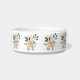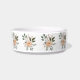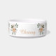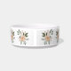 Diese personalisierte Tierschale für Hunde oder Katzen hat einen eleganten Blumendruck aus pfirsichfarbenen Blume vor weißem Hintergrund.