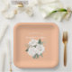 Elegante Peach Fuzz und White Roses Wedding Pappteller