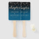 Feiern Sie Ihren besonderen Tag mit diesen gedanklichen, einfachen, aber stilvollen Hochzeitshandfans, die elegante handgeschriebene und Blockschrift in Pfirsich mit einer Konfetti-Set-Dusche auf einem schwarzen bis blauen ozeanischen Schatten mit blauem, mediterranem Hintergrund. Passen Sie Ihre Wünsche an. Umkehrung zeigt identisches Design. Design © W.H. Sim. Weitere Informationen unter zazzle.com/expressionsoccasions
