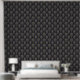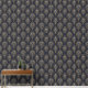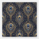Elegante, dunkelblaue Tapete mit verzierten Deko-inspiriert Illustrationen von goldenen, blauen und grünen Pfauenfedern.