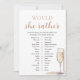 Die eleganten Golden Pearls und Prosecco "Würden Sie lieber spielen" ist eine schöne Ergänzung zu Ihrem Brautparty. Dieses Spiel mit eleganten Goldperlen und Prosecco-Motiven bietet einen unterhaltsamen und einladenden Weg für Gäste, ihre Vorlieben und Einsichten zu teilen. Mit nachdenklichen Fragen wird es sicher zum Lachen und zum lebhaften Gespräch unter den Teilnehmern führen, was es zu einem unvergesslichen Teil der Festlichkeiten macht.