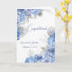 Feiern Sie das glückliche Paar zu ihrem besonderen Tag mit dieser schönen Hochzeitsgratulationskarte. Das Design besticht durch eine ruhige, blumengeschmückte Umgebung, die blauen Rose und die von silbernen Blätter und zarten Spitzenakzenten umgeben ist. Die Kombination aus beruhigenden Blautönen und metallischem Silber schafft ein elegantes und erfrischendes Aussehen und macht diese Karte zu einer perfekten Wahl für eine formale und ruhige Feier der Liebe. Ein herzlicher Wille, an ihren besonderen Tag zu erinnern!